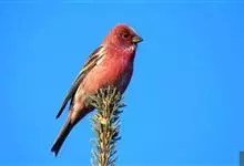 喜马拉雅白眉朱雀:小型鸟类,体长15-17厘米,体重24-35克。额基、眼先深红色,前额和一条长而宽阔的眉纹珠白色沾有粉红色并具丝娟光泽,在暗色的头部极为醒目。头顶至背棕褐或红褐色、具黑褐色羽干纹,…全部>>