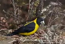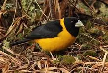 黄颈拟蜡嘴雀:小型鸟类,体长20-22厘米。嘴粗大,黑色。雄鸟整个头、颈、颏、喉和上胸辉黑色,两翅和尾亦为黑色,其余上体橙黄色,下体鲜黄色。雌鸟头、颈、颏、喉和上胸中央灰色或暗灰色,…全部>>