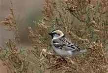 黑顶麻雀:为雀科麻雀属的鸟类。体重24-35克,体长144-167毫米,是一种中等体型的麻雀。繁殖期雄鸟头顶有黑色的冠顶纹至颈背,眼纹及颏黑,眉纹及枕侧棕褐,脸颊浅灰。上体褐色而密布黑色纵纹。…全部>>