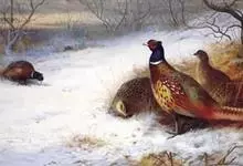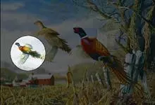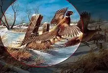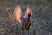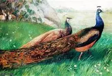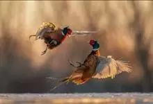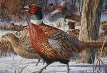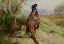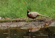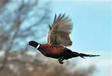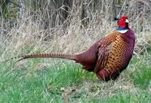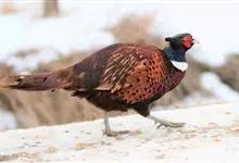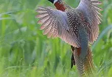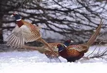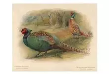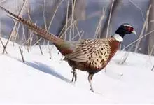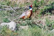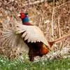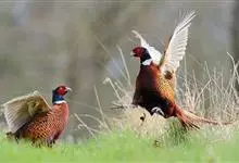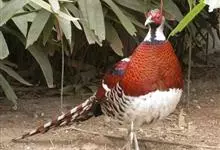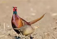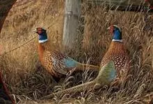 环颈雉是雉科、雉属的一种走禽,共有30个亚种。体重900-1050克,体长53-89厘米。体型较家鸡略小,但尾巴却长得多。雄鸟和雌鸟羽色不同,雄鸟羽色华丽,多具金属反光,…全部>>