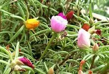 大花马齿苋:一年生草本,高10-30厘米。茎平卧或斜升,紫红色,多分枝,节上丛生毛。叶密集枝端,较下的叶不规则互生,叶片细圆柱形,无毛。花单生或数朵簇生枝端,直径2.5-4厘米,…全部>>