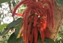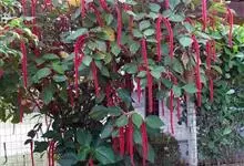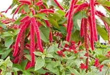 红穗铁苋菜:为大戟科、铁苋菜属植物,灌木,高0.5-3米。嫩枝被灰色短绒毛,毛逐渐脱落,小枝无毛。 花序色泽鲜艳,葇荑花序下垂,如狐狸尾状,雌花近卵形,长约0.8毫米,顶端急尖,具短毛;子房近球形,…全部>>