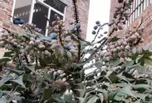 十大功劳 Fedde),小檗科十大功劳属常绿灌木植物。叶子较大且较多,呈椭圆形,绿色,表面光滑无毛,叶柄较长;花朵较小,呈多边形,黄色,花瓣对称分布,表面有绒毛;果实呈圆形,褐色,…全部>>
