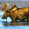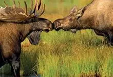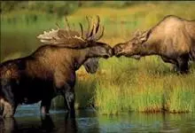 驼鹿:鹿科、驼鹿属动物。体长200-260厘米,肩高160-240厘米,体重400-700千克。肩部特别高耸,则又像骆驼背部的驼峰,因此得名。以雄性的掌形鹿角为特征。驼鹿共有8个亚种,…全部>>