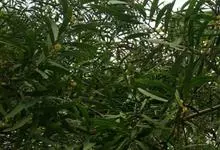 大叶相思是豆科,相思树属常绿乔木,枝条下垂,树皮平滑,灰白色;叶片镰状长圆形,两端渐狭,穗状花序,簇生于叶腋或枝顶;花橙黄色;花萼顶端浅齿裂;花瓣长圆形,荚果成熟时旋卷,果瓣木质,种子黑色,…全部>>