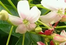 使君子 Jongkind)是使君子科、使君子属攀援灌木,叶对生,椭圆形,两面均被灰白色柔毛。穗状花序,倒挂下垂。花期夏秋。果有五棱,熟时黑色,种子白色。分布于印度、缅甸、菲律宾和中国。喜温润,深根性,…全部>>
