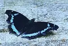 琉璃蛱蝶是鳞翅目蛱蝶科琉璃蛱蝶属节肢动物,又名蓝带蛱蝶。成虫前翅外缘自顶角至M1脉端突出,Cu2脉端至后角突出,呈波状圆弧状;翅正面黑褐色,亚顶端部有1个白斑;两翅外中区贯穿1条灰蓝色宽带,…全部>>