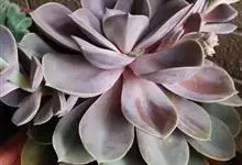 紫珍珠是景天科石莲花属的多年生肉质草本植物。植株中小型;叶片肉质,匙形,呈莲座状紧密排列;叶片粉紫色,叶缘呈粉白色,光照充足时颜色亮丽,不足时叶色会呈现深绿色或灰绿色,叶面光滑,被轻微白粉,…全部>>
