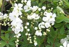 珍珠梅 A. Braun),蔷薇科珍珠梅属灌木植物,高2米。小枝无毛或微被短柔毛;羽状复叶,小叶披针形或卵状披针形;花顶生密集圆锥花序短柔毛,花瓣白色长圆形或倒卵形;蓇葖果长圆形果柄直立;花期7-8月,…全部>>