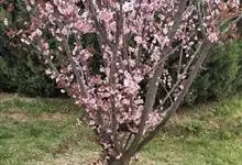 美人梅是蔷薇科李属的落叶小乔木。叶互生,呈广卵形或卵形,紫红色;花呈淡紫红色,半重瓣或重瓣,花叶同放,繁密有香味;果实呈球形,呈鲜红色;花期3-4月;果期5-6月。美人梅原产于美国,…全部>>