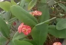 铁海棠为大戟科大戟属蔓生灌木植物;茎多分枝,具纵棱,呈旋转状;叶互生,通常集中于嫩枝上;每个花序基部边缘具微小的红色尖头;苞叶先端圆且具小尖头,无柄,上面鲜红色,下面淡红色;苞片丝状;子房光滑无毛,…全部>>