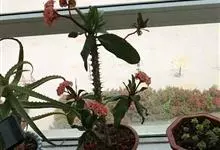 虎刺梅:别称铁海棠,是蔓生灌木植物。茎多分枝,长60-100厘米,直径5-10毫米,具纵棱,密生硬而尖的锥状刺,刺长1-1.5厘米,直径0.5-1.0 毫米,常呈3-5列排列于棱脊上,呈旋转。叶互生…全部>>