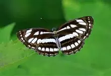 小环蛱蝶,Neptis sappho ,鳞翅目,蛱蝶科环蛱蝶属的一个物种。翅展45mm。翅面黑色,斑纹白色前翅中室有一白色纵纹,断续状;翅反面棕红色。分布于东北、河南、陕西、台湾、北京等。全部>>