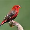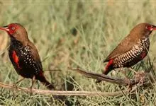 红梅花雀小型鸟类,体长9-10厘米。雄鸟通体朱红色,背、肩、胸等满布白色小斑点,两翅和尾黑褐色均具白色端斑,嘴红色,脚蜡黄色。雌鸟上体淡褐色或赭褐色,翅上中覆羽、大覆羽和内侧飞羽末端具白色斑点,…全部>>