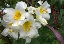 麝香百合:在中国台湾亦称铁炮百合。鳞茎球形或近球形,高2.5-5厘米;鳞片白色。茎高45-90厘米,绿色,基部为淡红色。叶散生,披针形或矩圆状披针形,两面无毛。花单生或2-3朵;花喇叭形,白色,筒外…全部>>