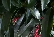 朱砂根是报春花科紫金牛属植物,又名铁凉伞、红铜盘、百两金、大罗伞、开喉箭等,为常绿小灌木,高1~2米,茎粗壮,无毛,除侧生特殊花枝外,无分枝,叶片革质或坚纸质,椭圆形、椭圆状披针形至倒披针形,…全部>>