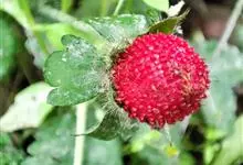 蛇莓 Teschem.),别名三爪凤、龙吐珠、东方草莓等,为蔷薇科蛇莓属的多年生草本植物。其根茎短,粗壮;匍匐茎多数;小叶片倒卵形至菱状长圆形;托叶窄卵形至宽披针形;花单生于叶腋,花瓣倒卵形,…全部>>