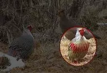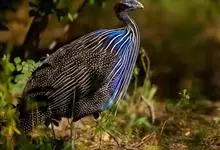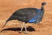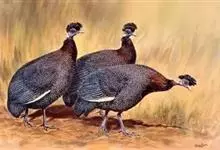 鹫珠鸡:是珠鸡科中体形最大的一种,因头颈部像兀鹫而得名。雌雄羽色相似,为黑色基底上遍布白色点斑,如同珍珠。以各种植物的种子和小型动物为食。走禽。体结实,喙短,呈圆锥形,适于啄食植物种子;脚强健,具锐爪,…全部>>