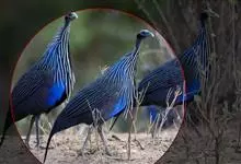 鹫珠鸡:是珠鸡科中体形最大的一种,因头颈部像兀鹫而得名。雌雄羽色相似,为黑色基底上遍布白色点斑,如同珍珠。以各种植物的种子和小型动物为食。走禽。体结实,喙短,呈圆锥形,适于啄食植物种子;脚强健,具锐爪,…全部>>