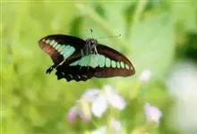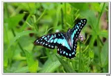 青带凤蝶Graphium sarpedon ,又名青凤蝶,是最普遍的中型凤蝶,飞行速度很快。青带凤蝶的翅膀中央有许多浅蓝色的斑点,很整齐地排列成一条直线。这些斑点由上而下逐渐变大,就像一条青色的带子。全部>>