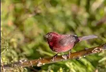 酒红朱雀小型鸟类,体长13~15厘米。雄鸟通体深红色,头部深朱红或棕红色,下背和腰玫瑰红色,眉纹粉红色而具丝绢光泽。两翅和尾黑褐或灰褐色、具暗红色狭缘,内侧两枚三级飞羽具淡粉红色先端。…全部>>