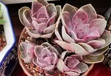 紫珍珠是景天科石莲花属的多年生肉质草本植物。植株中小型;叶片肉质,匙形,呈莲座状紧密排列;叶片粉紫色,叶缘呈粉白色,光照充足时颜色亮丽,不足时叶色会呈现深绿色或灰绿色,叶面光滑,被轻微白粉,…全部>>