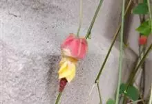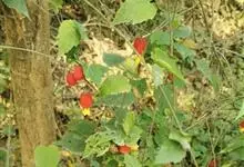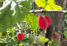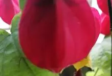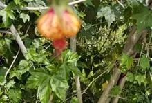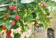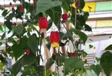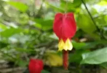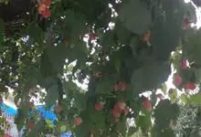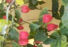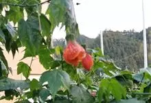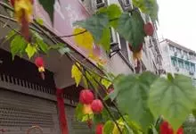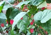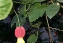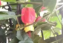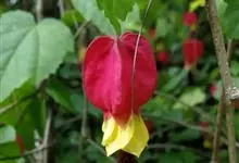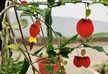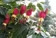 红萼苘麻是锦葵科、苘麻属常绿软木质灌木,叶绿色,长5-10厘米,心形,叶端尖,叶缘有钝锯齿,有时分裂,有细细的叶柄;叶互生,掌状叶脉;花单生于叶腋,具长梗,下垂;花萼红色,半套着大约4厘米长的花瓣,…全部>>