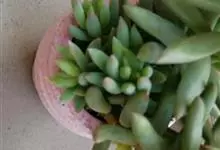 玉缀,别名翡翠景天景天科景天属常绿或半常绿多肉植物。植物匍匐下垂,翠绿色。叶小,多汁,纺锤形,、密密麻麻,似松鼠尾巴。花小,深玫瑰色,春季开放。全部>>