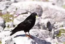 红嘴山鸦,是脊索动物门鸟纲雀形目鸦科鸟类。红嘴山鸦的成鸟通体羽毛纯黑色具有蓝色金属光泽,翼和尾泛有蓝绿色金属光泽;虹膜暗褐色,喙较为尖细,并且呈镰状下弯,喙和脚朱红色。…全部>>
