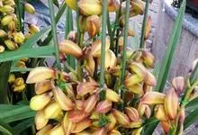 大花蕙兰,兰科兰属的常绿附生草本植物。大花蕙兰的假鳞茎椭圆形,粗大;根多为肉质圆柱状,粗壮肥大,大都呈灰白色;叶宽而长,下垂,浅绿色有光泽;花亭斜生,稍弯曲;花大,色泽艳丽,…全部>>