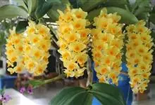 束花石斛是兰科石斛属植物。茎粗厚,肉质,下垂或弯垂,圆柱形,不分枝,具多节。叶二列,互生于整个茎上,纸质,长圆状披针形。伞状花序近无花序柄,每2-6花为一束,侧生于具叶的茎上部;花黄色,…全部>>