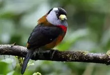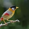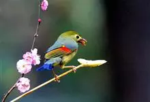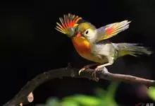 银耳相思鸟小型鸟类,体长14~18厘米。头顶黑色,耳羽银灰色,前额橙黄色;外侧飞羽橙黄色,基部朱红色,极为鲜艳、醒目。尾圆形,尾上、尾下覆羽朱红色,尾暗灰褐色,外侧尾羽橙黄色,其余上体橄榄绿或橄榄黄色。…全部>>