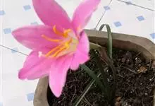 小韭兰学名韭菜莲又名风雨花、菖蒲莲、红玉帘和旱水仙,多年生草本,鳞茎卵球形,基生叶常数枚簇生,线形,扁平,花单生于花茎顶端,下有佛焰苞状总苞,花玫瑰红色或粉红色,蒴果近球形,种子黑色,花期夏秋。韭莲…全部>>