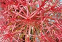 网球花是石蒜科,网球花属多年生草本植物。鳞茎球形,叶片长圆形,叶柄短,鞘状。花茎直立,实心,高可达90厘米,先叶抽出,淡绿色或有红斑;伞形花序具多花,花红色;花被管圆筒状,花被裂片线形,花丝红色,…全部>>