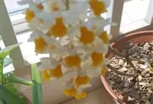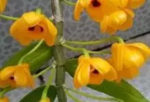 束花石斛是兰科石斛属植物。茎粗厚,肉质,下垂或弯垂,圆柱形,不分枝,具多节。叶二列,互生于整个茎上,纸质,长圆状披针形。伞状花序近无花序柄,每2-6花为一束,侧生于具叶的茎上部;花黄色,…全部>>