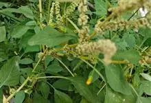 反枝苋是苋科苋属的一年生草本植物。株高达1米;茎密被柔毛;叶菱状卵形或椭圆状卵形,先端锐尖或尖凹,两面及边缘被柔毛,下面毛较密;穗状圆锥花序,顶生花穗较侧生者长;花被片长圆形或长圆状倒卵形,…全部>>