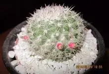 仙人掌科乳突球属原产墨西哥,通常单生,茎圆桶形,径粗9-10cm,高25-30cm,深绿色。棱13-21,放射刺20-30,中刺7-15,长2cm,红褐色。花色紫红。喜温暖干燥和阳光充足环境。较耐寒,…全部>>