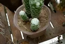 玉翁是仙人掌科、乳突球属多年生草本多浆植物。植株幼时呈扁球形或球形,以后长成圆筒状,直径10厘米左右,淡绿色。疣状突起呈圆锥形,新刺座的白色绵毛很短,疣突腋部则有20根白色长绵毛,绵毛长4厘米左右,…全部>>