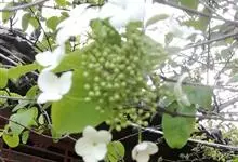 蝴蝶戏珠花 Miq.)是荚蒾科荚蒾属植物。落叶灌木,高达3米;当年小枝浅黄褐色。叶较狭,宽卵形或矩圆状卵形,有时椭圆状倒卵形。花序直径4-10厘米,外围有4-6朵白色、木型的不孕花。果实先红色后变黑色,…全部>>