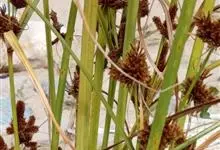 纸莎草是莎草科、莎草属的植物,具有粗壮的根状茎,高达2-3米,茎秆簇生,粗壮,直立,钝三棱形。叶退化呈鞘状,茎秆顶端着生总苞片,呈伞状簇生,总苞片叶状,披针形,顶生花序伞梗极多,细长下垂。瘦果灰褐色,…全部>>