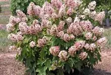栎叶绣球是绣球科、绣球属落叶丛生灌木,株高可达2米。叶片栎形,深绿色,秋季变为红色或紫色,冬芽有鳞片。托叶缺。聚伞花序排成伞形状、伞房状或圆锥状,顶生;苞片早落;花白色,萼片大,花瓣状,孕性花较小,…全部>>