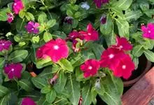 四季梅,又称 日日春、日日新、日春花、长春花、四时春、五瓣梅、雁来红、天天开等。四季不枯萎。夹竹桃科长春花属植物,常绿直立亚灌木。株高30-60厘米,叶对生,长椭圆形,深绿具光泽。花腋生,花冠高脚碟…全部>>