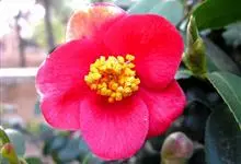 滇山茶:灌木至小乔木,有时高达15米,嫩枝无毛。叶阔椭圆形,上面干后深绿色,发亮,下面深褐色,无毛,侧脉6-7对,边缘有细锯齿。花顶生,红色,直径10厘米,无柄;苞片及萼片10-11片,花瓣红色,…全部>>