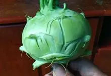 擘蓝是十字花科,芸薹属二年生草本植物,高可达60厘米,茎短,无毛,离地面处膨大实心长圆球体或扁球体,绿色,其上生叶。叶片略厚,边缘有不规则裂齿;叶柄常有少数小裂片;总状花序顶生;种子有棱角。4月开花,…全部>>