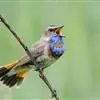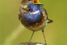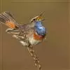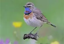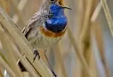 蓝点颏亦称“蓝喉歌鸲”,通称蓝靛颏儿。身体大小和麻雀相似,体长12-13厘米,体重17-18克。头部、上体主要为土褐色。眉纹白色。尾羽黑褐色,基部栗红色。颏部、喉部辉蓝色,下面有黑色横纹。下体白色。…全部>>