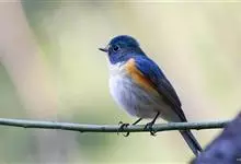 红胁蓝尾鸲俗名:蓝点冈子、蓝尾巴根子、蓝尾杰、蓝尾欧鸲。体型略小而喉白的鸲。特征为橘黄色两胁与白色腹部及臀成对比。雄鸟上体蓝色,眉纹白;亚成鸟及雌鸟褐色,尾蓝。…全部>>