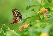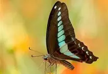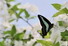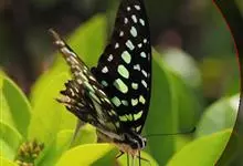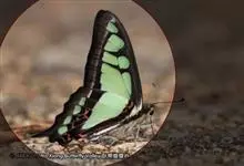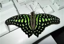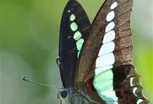 青带凤蝶Graphium sarpedon ,又名青凤蝶,是最普遍的中型凤蝶,飞行速度很快。青带凤蝶的翅膀中央有许多浅蓝色的斑点,很整齐地排列成一条直线。这些斑点由上而下逐渐变大,就像一条青色的带子。全部>>