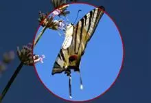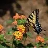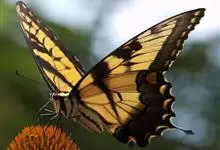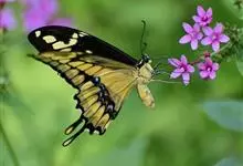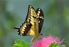 金凤蝶,是鳞翅目凤蝶科凤蝶属动物。金凤蝶为中型凤蝶,翅展70-84毫米,翅背面底色黑褐色,翅脉黑色,翅室具黄斑;前翅背面基部呈暗黄色,亚外缘为黑色,内具一列小黄斑;后翅背面亚外缘区具黑宽边,…全部>>