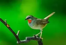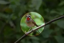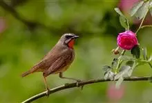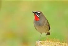 红点颏:是鸟纲、鹟科的鸣禽。又名西伯利亚歌鸲。体长14-17厘米,体重16-27克。雄鸟头部、上体主要为橄榄褐色。眉纹白色。颏部、喉部红色,周围有黑色狭纹。胸部灰色,腹部白色。雌鸟颏部、喉部不呈赤红色,…全部>>