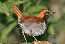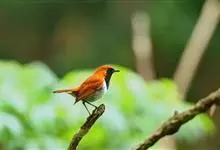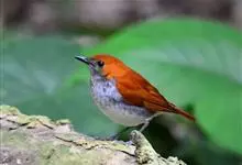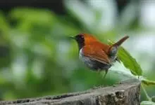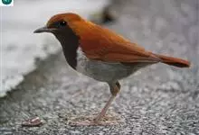 琉球歌鸲是鹟科、歌鸲属小型鸟类,体长约14厘米。雄鸟上体暗橙色,颏、喉、胸黑色。其余下体白色。雌鸟亦为橙色,颏、喉白色,其余下体污白色而缀有灰色。嘴峰黑褐色或褐色,脚肉色或肉黄色。…全部>>